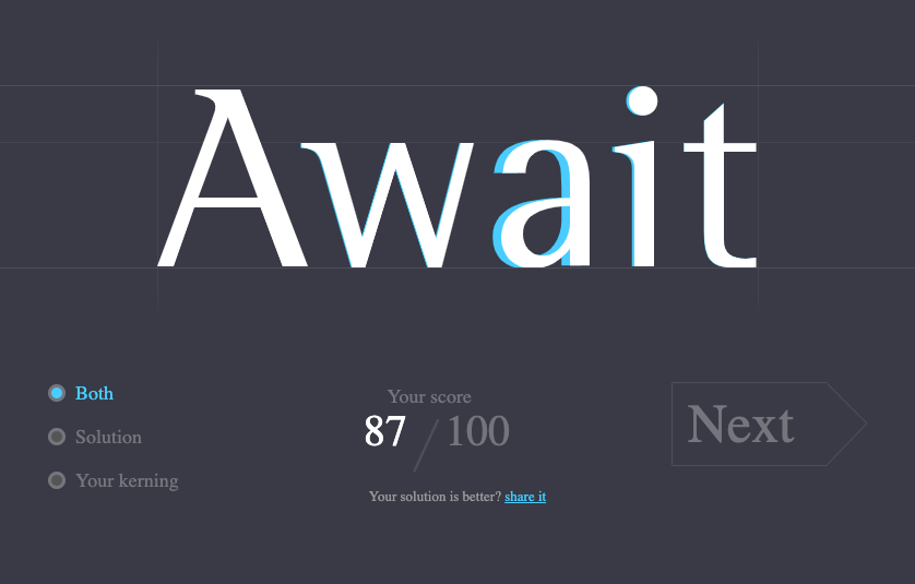 本物のデザイナーが作ったカーニングを実践できるというのと、練習した後に点数をつけてくれのが面白いです。