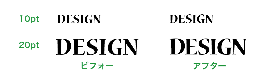 例えば、小さいバージョンのロゴ等を作る場合は、カーニングを緩めるのが一般的です。