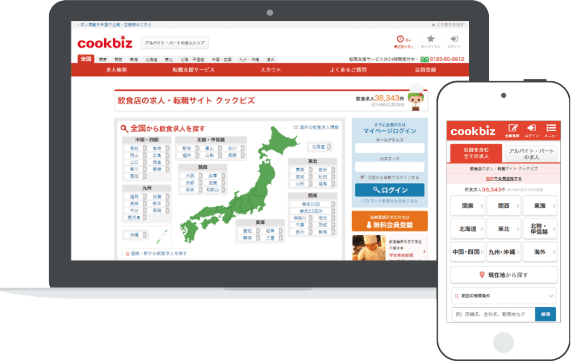 cookbizは、飲食店経験者ばかりが集まる求人サイトです。